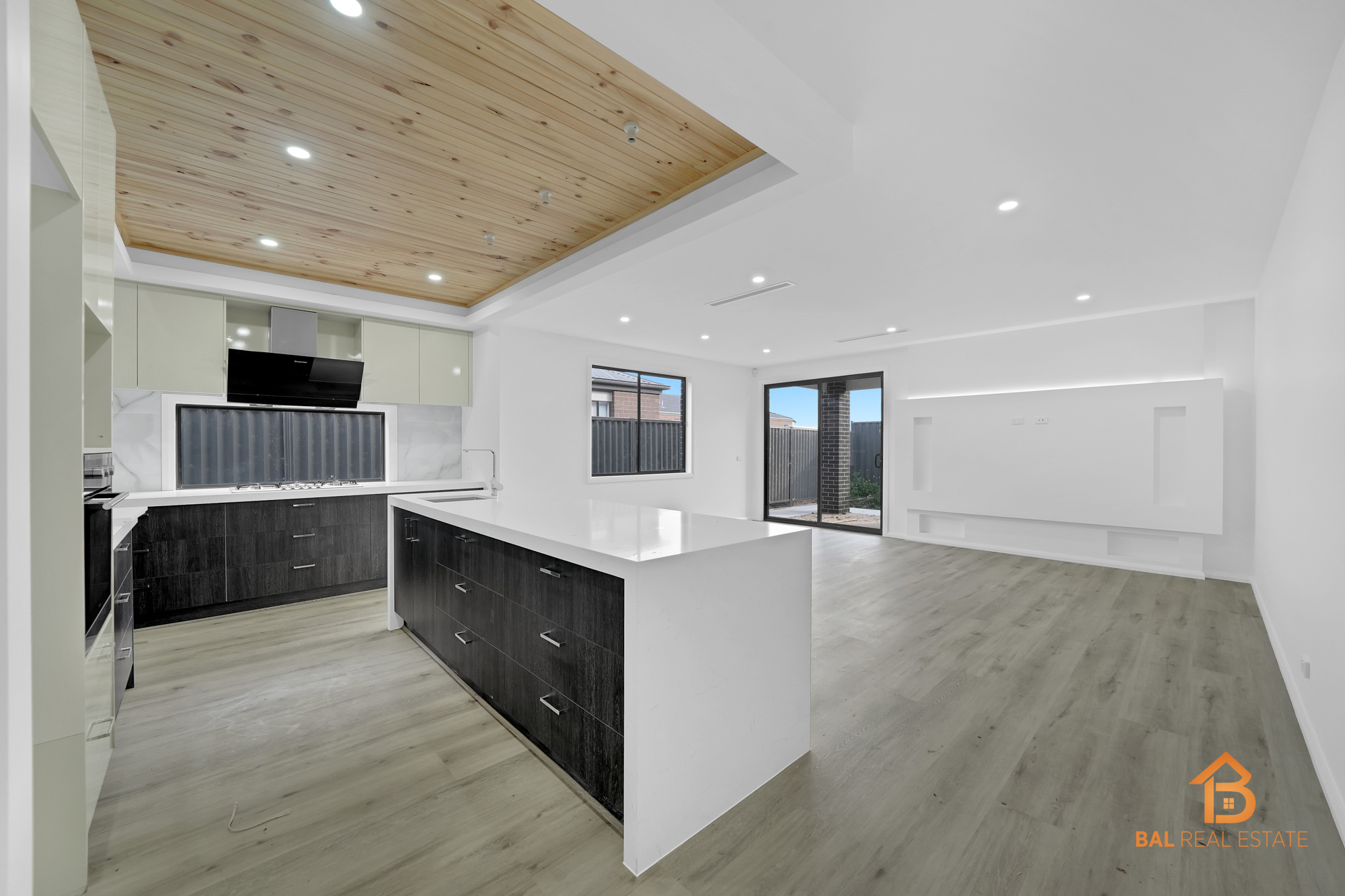 – Glass splashback and Grand Island Benchtops to Kitchen
