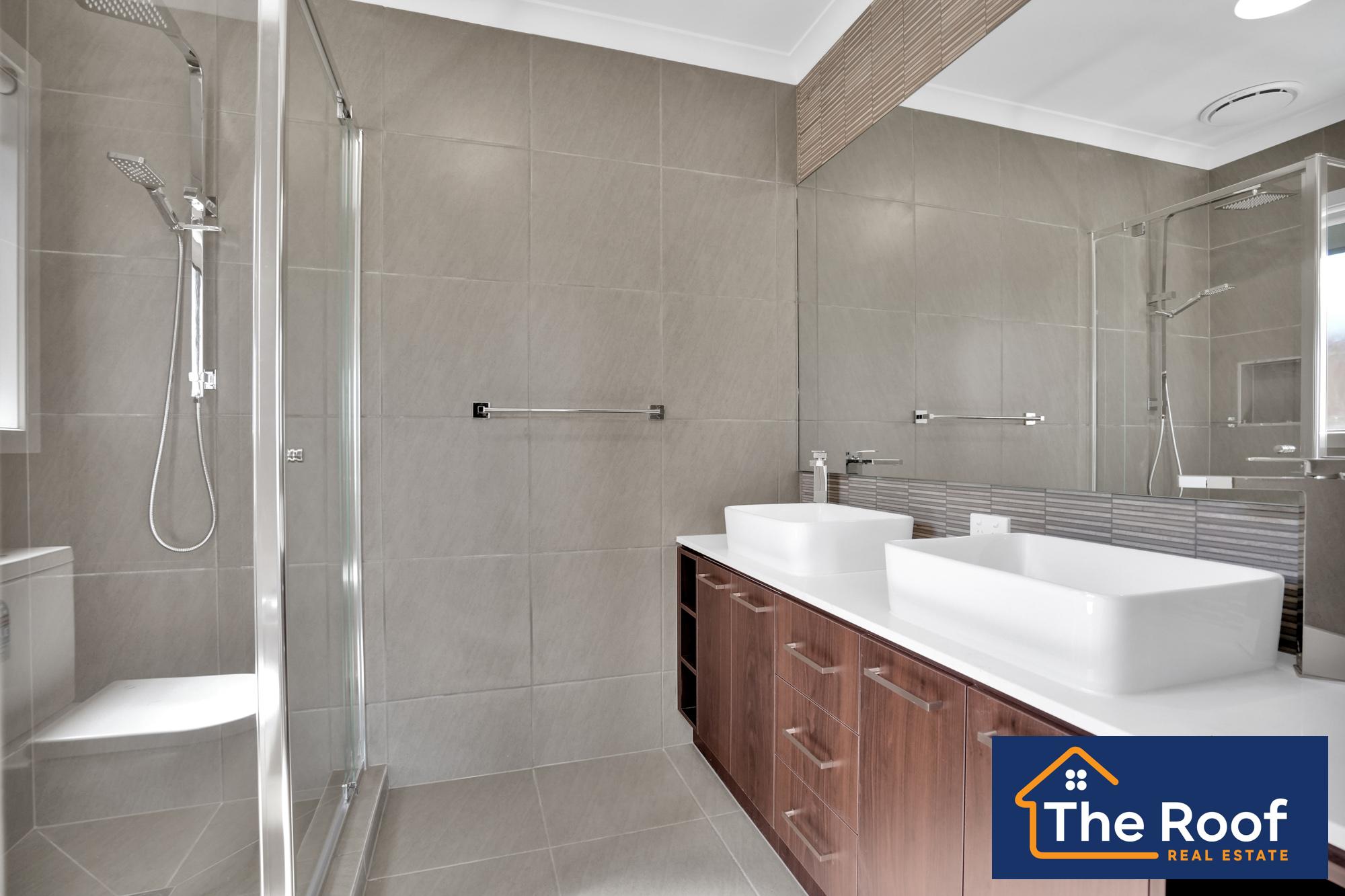 # Ensuit with double vanity & floor to ceiling tiles