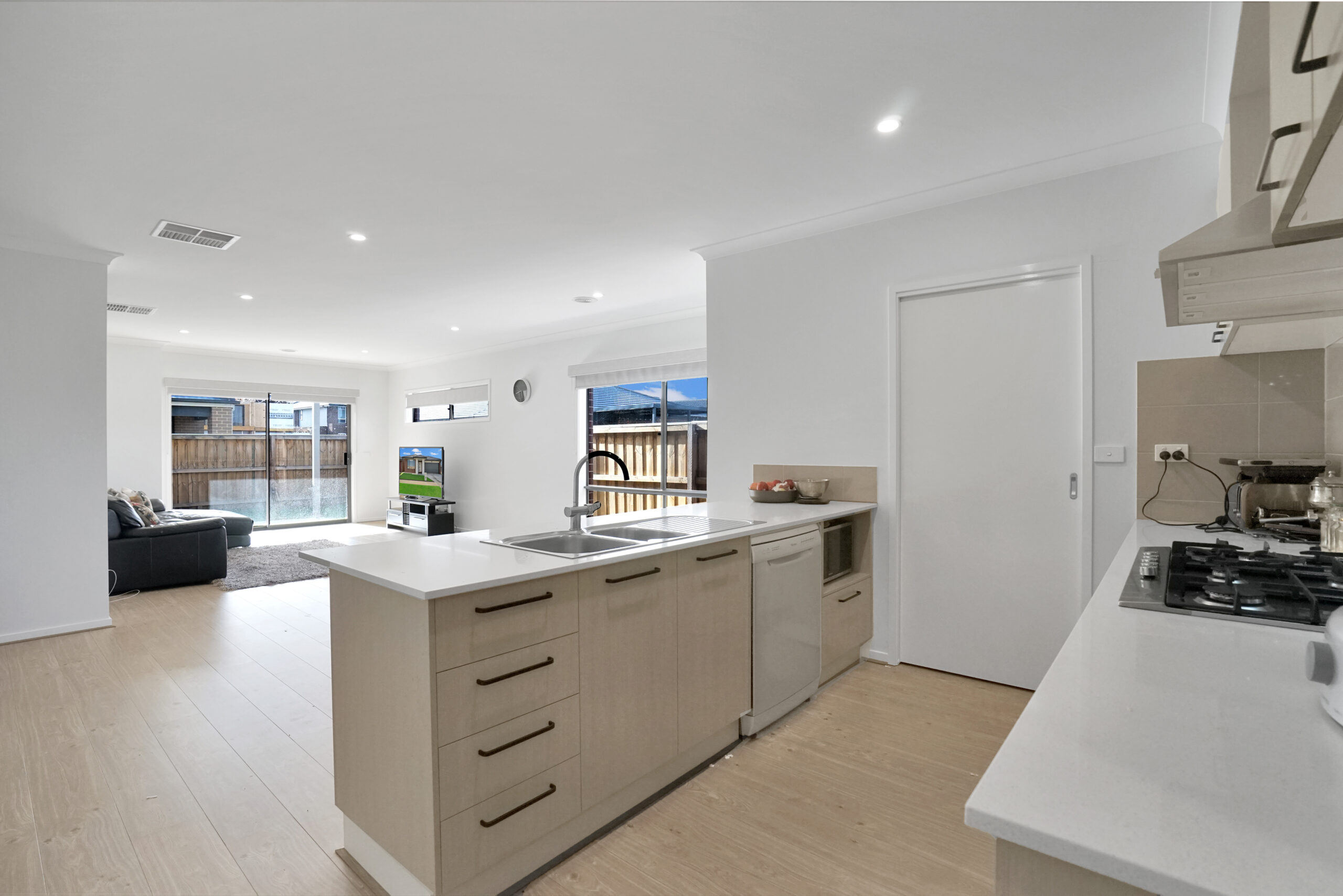 • Open plan living space comprising spacious dining and living area adjacent kitchen.