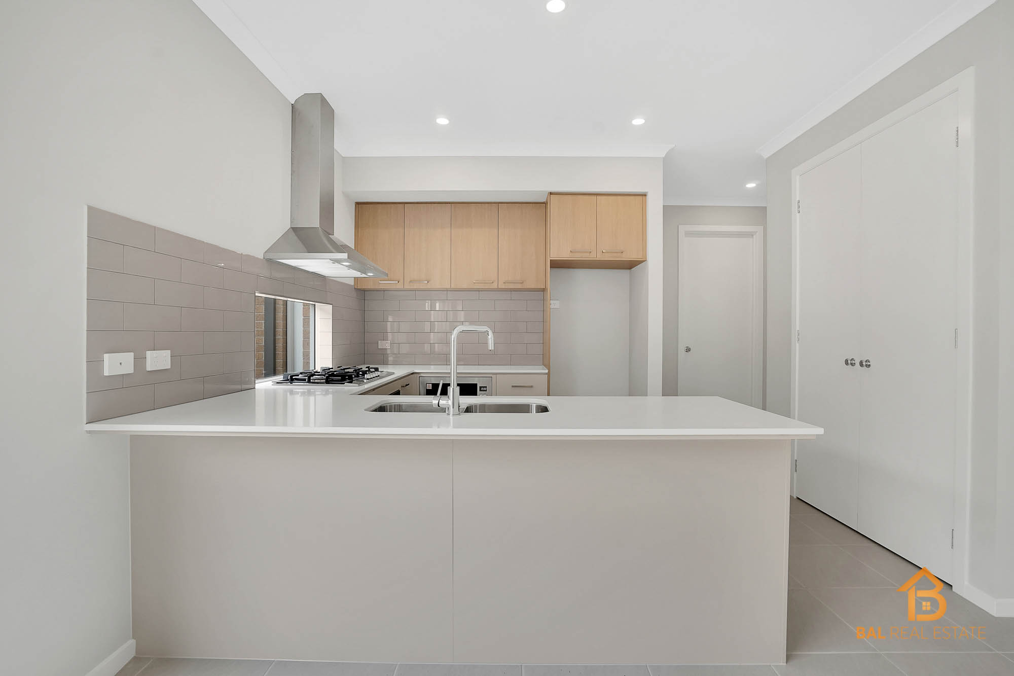 – Modern Open-Plan Kitchen with Stainless Steel Appliances, including dishwasher