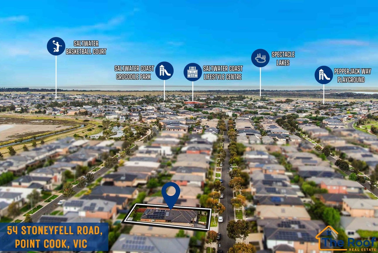 The Roof Real Estate presents an exceptional opportunity to own a stunning family home in one of Point Cooks most sought-after locations! Positioned in the highly sought-after Saltwater Coast Estate, this beautifully presented home combines style, comfort, and convenience in an unbeatable location. Offering four spacious bedrooms, including a master with private ensuite, and a well-appointed central bathroom, it has been designed with family living in mind Sets on 448sqm land. Whether you’re a growing family , first home buyer or savvy investor, this property ticks all the boxes.